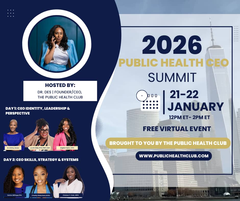The Public Health CEO Summit is a free, two-day virtual experience designed to help public health entrepreneurs step fully into CEO-level leadership—with clarity, confidence, and strategy heading into 2026.